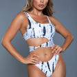 1 pc deep cut swimwear with crisscross straps and mesh paneling. Hand wash in cold water. Do not bleach. Dry in shade.