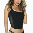 Leather strapless bustier with zip front closure, boning and lace up back. Adjustable and detachable garters.