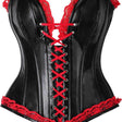 Top Drawer Black Faux Leather & Lace Trim Steel Boned Corset