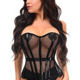 Top Drawer Black Faux Leather & White Lace Trim Steel Boned Corset