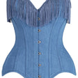 Top Drawer Blue Denim Underwire Steel Boned Burlesque Corset w/Bows
