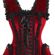 Top Drawer Dark Red Velvet & Beaded Steel Boned Overbust Corset
