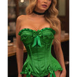 Top Drawer Green Satin w/Black Lace Overlay Steel Boned Overbust Corset