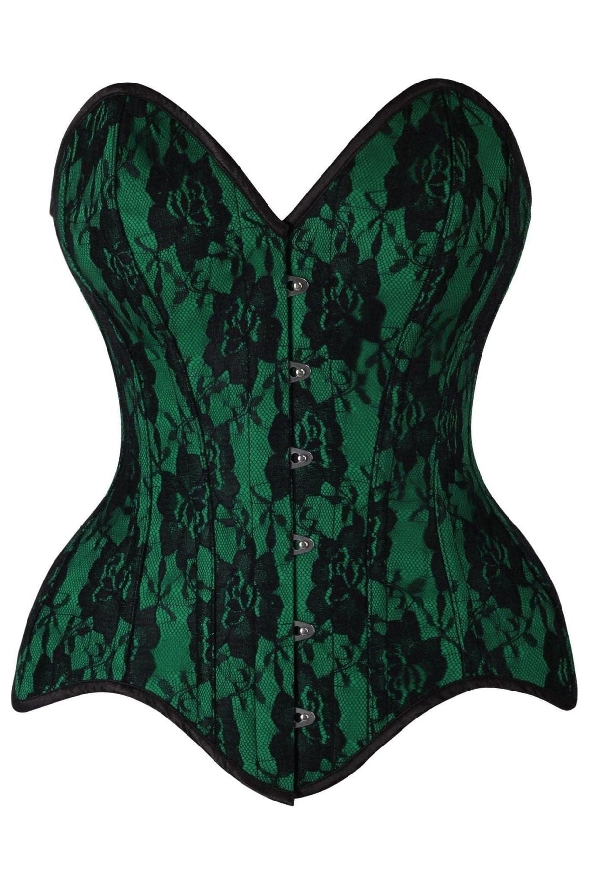 Top Drawer Green Satin w/Black Lace Overlay Steel Boned Overbust Corset
