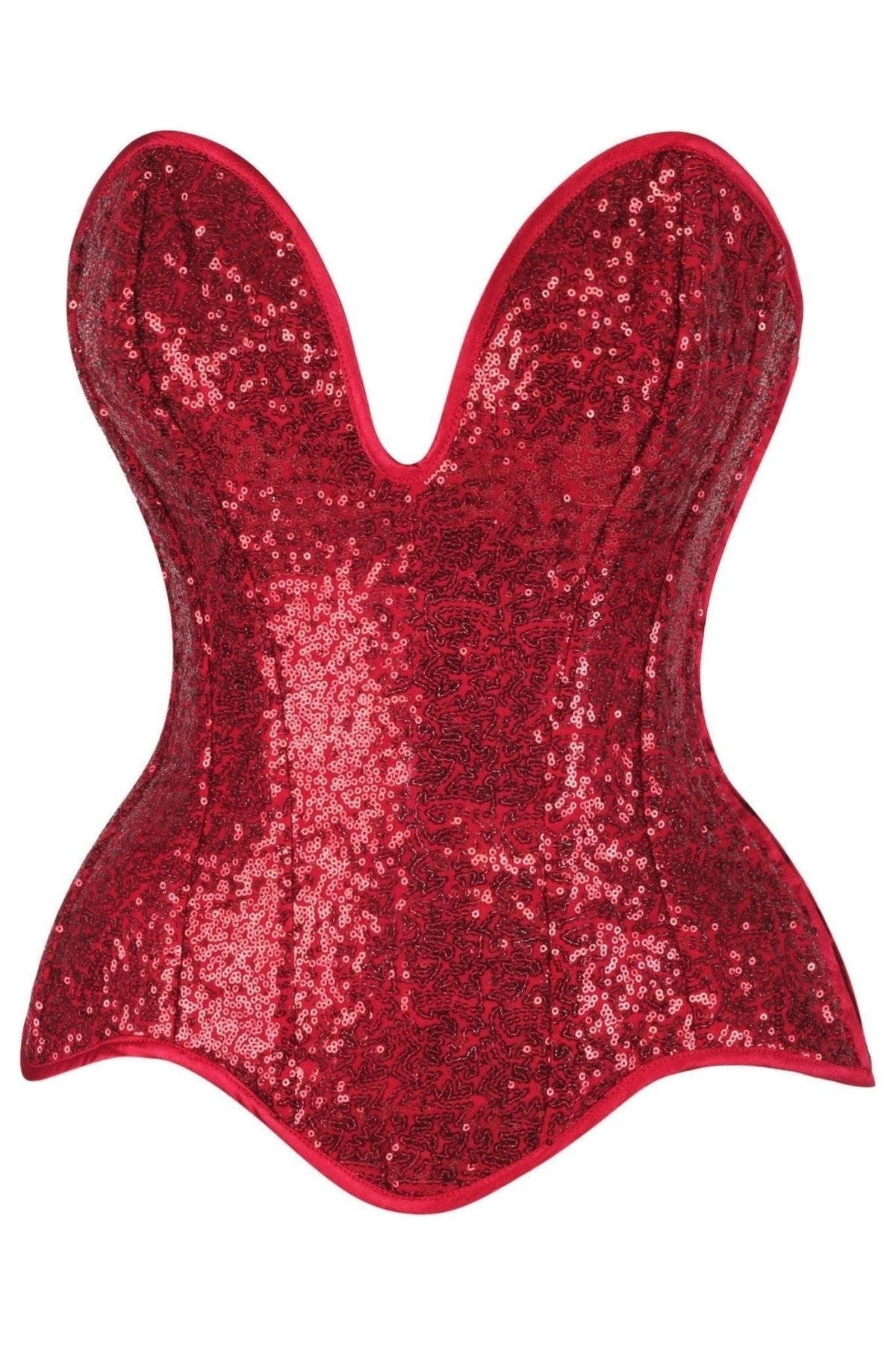 Top Drawer Steel Boned Red Sequin Plunge Neckline Overbust Corset