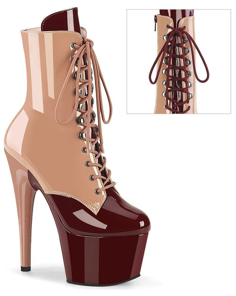 7" Heel, 2 3/4" PF Two Tone Lace-Up Ankle Boot, Side Zip