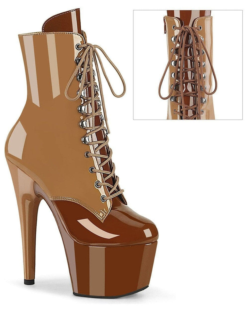 7" Heel, 2 3/4" PF Two Tone Lace-Up Ankle Boot, Side Zip