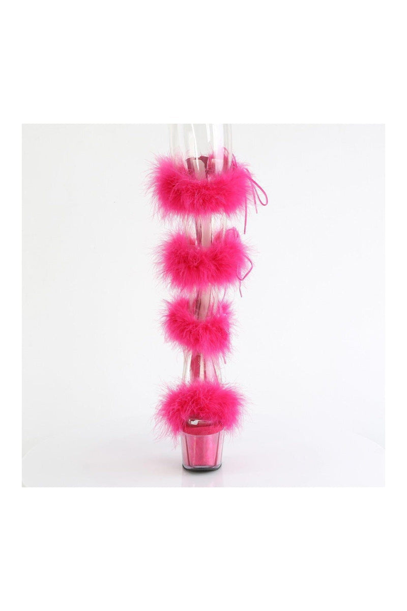 7" Heel, 2 3/4" Platform Marabou Fur Sandal, Back Zipper