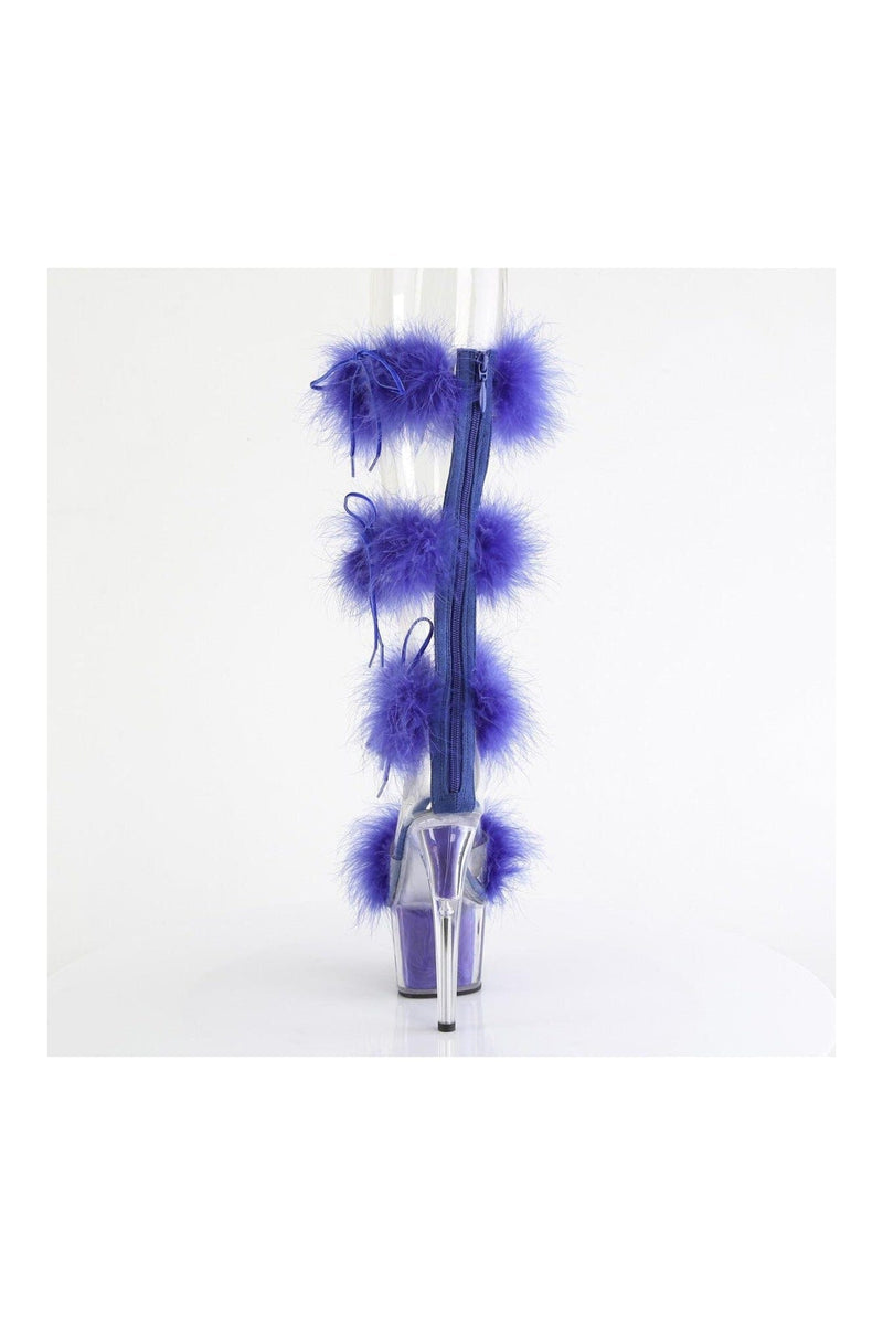 7" Heel, 2 3/4" Platform Marabou Fur Sandal, Back Zipper