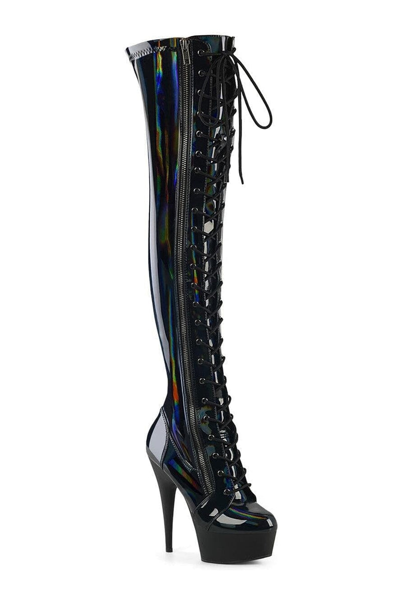 DELIGHT-3029 Black Patent Thigh Boot