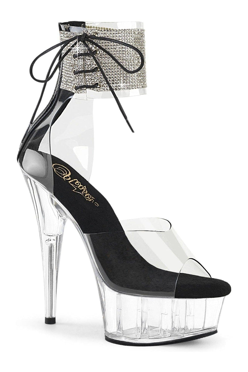 6" Heel, 1 3/4" Platform Rhinestone Ankle Cuff Sandal, Back Zipper