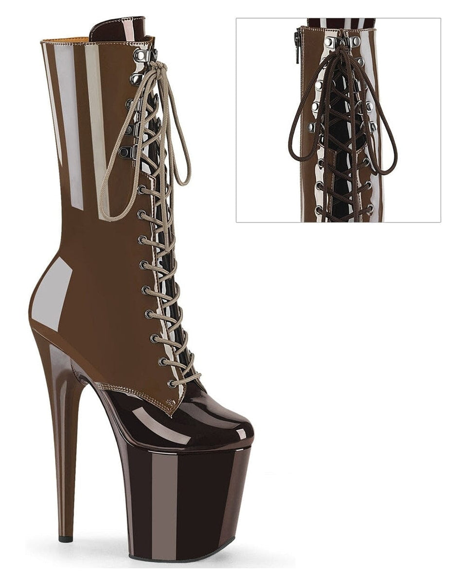 8" Heel, 4" Platform Two Tone Lace-Up Mid Calf Boot, Side Zipper