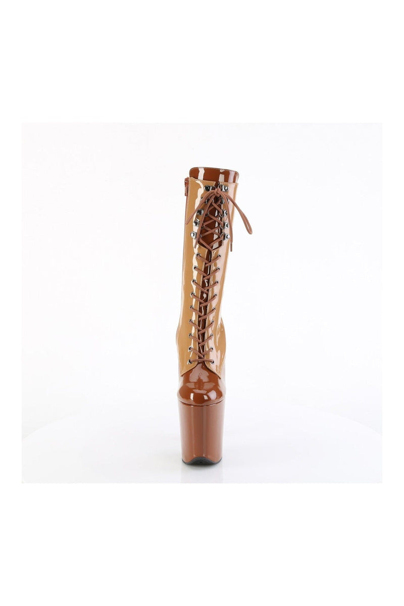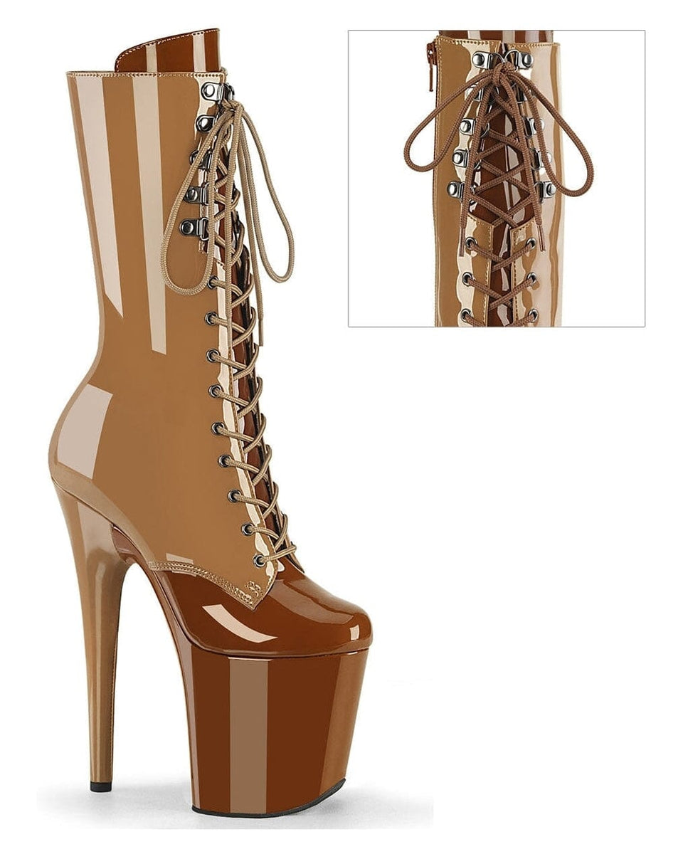 8" Heel, 4" Platform Two Tone Lace-Up Mid Calf Boot, Side Zipper