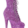 7" Heel, 2 3/4" PF Lace-Up Glitter Ankle Boot, Side Zip