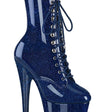 7" Heel, 2 3/4" Platform Lace-Up Holo Glitter Ankle Boot, Side Zipper