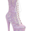 7" Heel, 2 3/4" Platform Lace-Up Holo Glitter Ankle Boot, Side Zipper