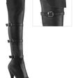 6" Heel, 1 3/4" Platform Triple Buckle Strap Thigh Boot, Side Zipper