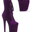 8" Heel, 4" Platform Velvet Lace-Up Front Ankle Boot