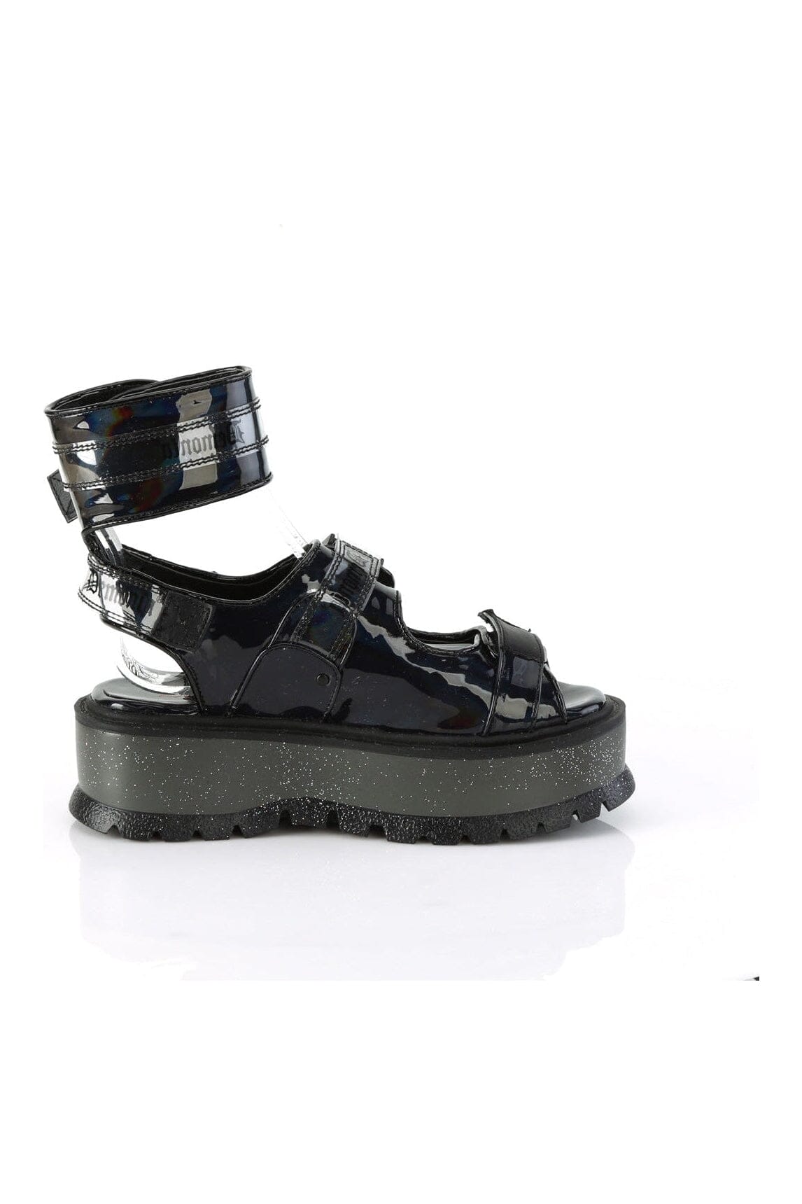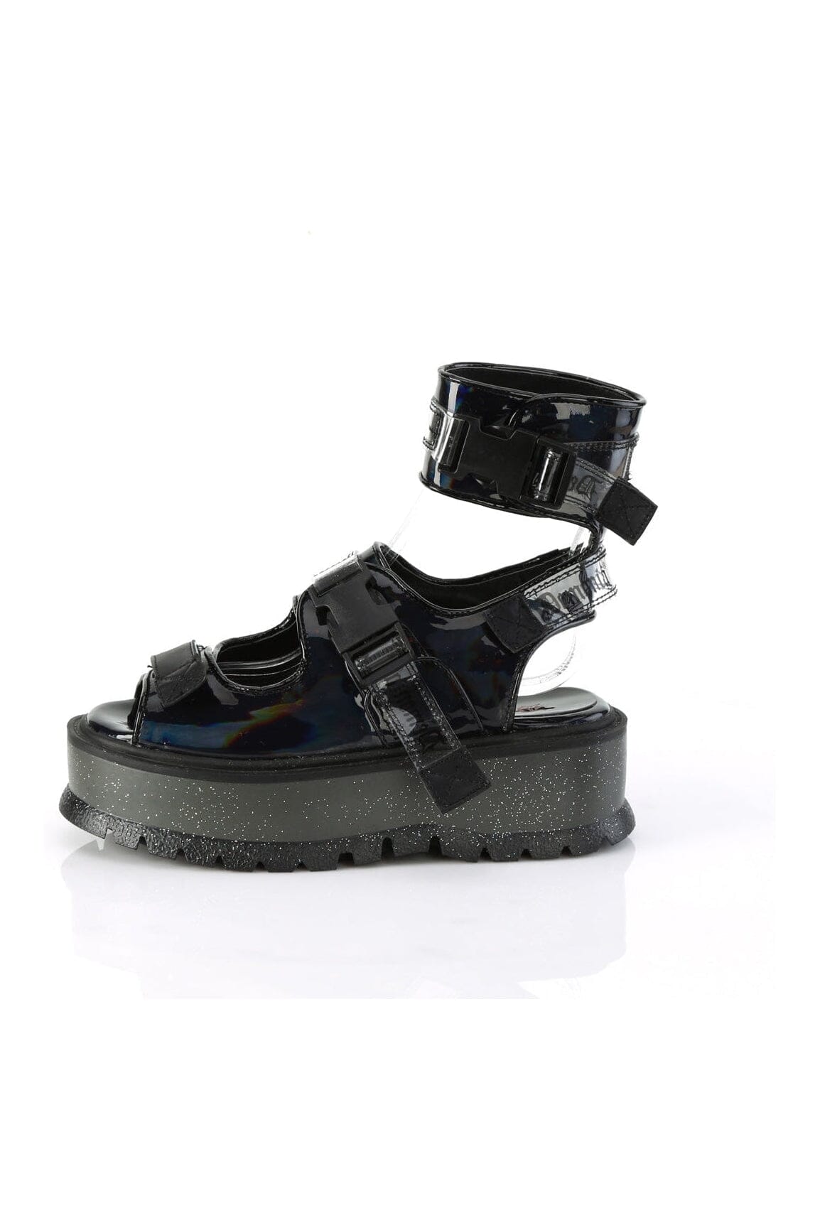 SLACKER-15B Black Hologram Patent Sandal