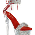 7" Heel, 2 3/4" Platform Lace Up Peep Toe Ankle Boot w/Rhinestone