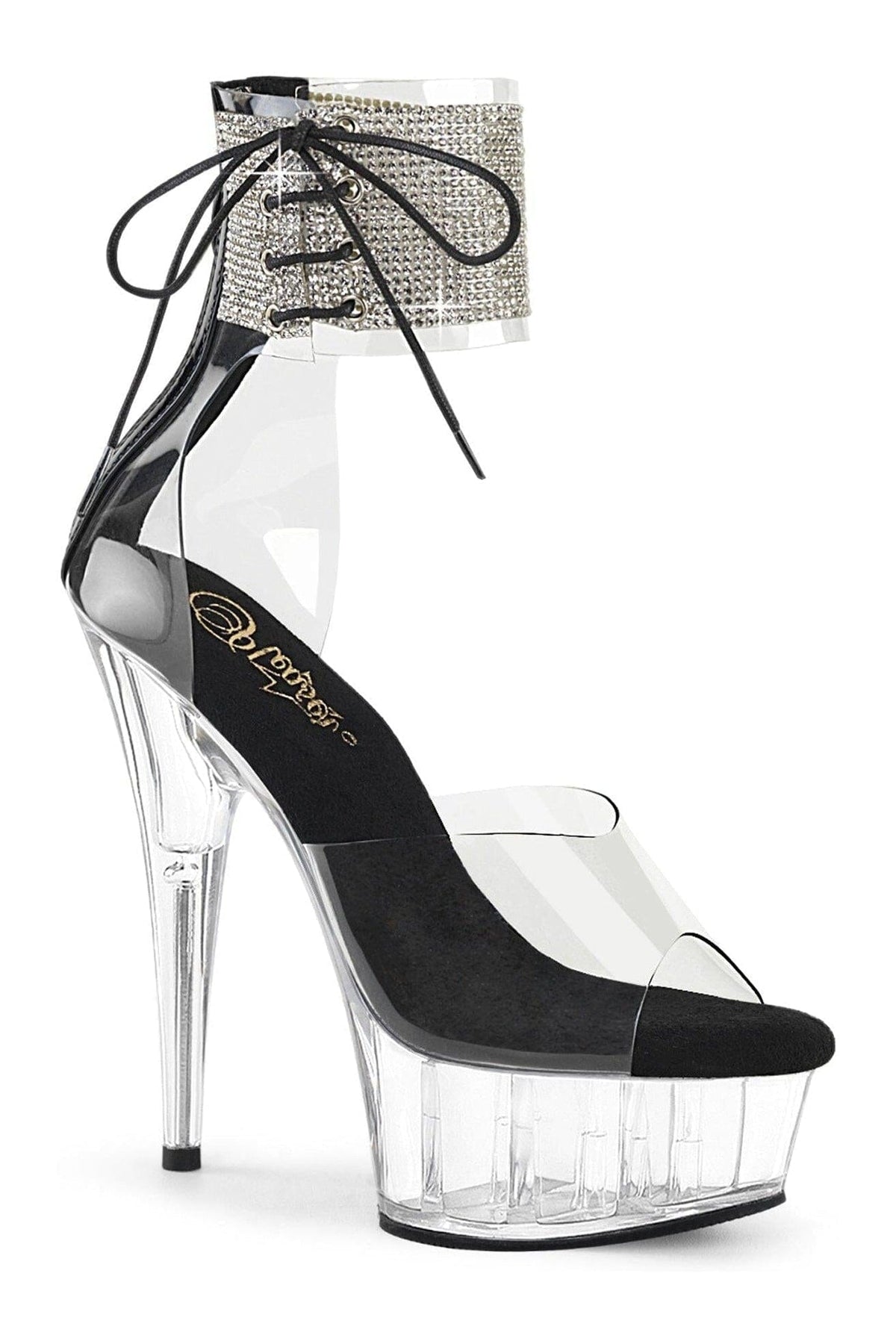 6" Heel, 1 3/4" Platform Rhinestone Ankle Cuff Sandal, Back Zipper
