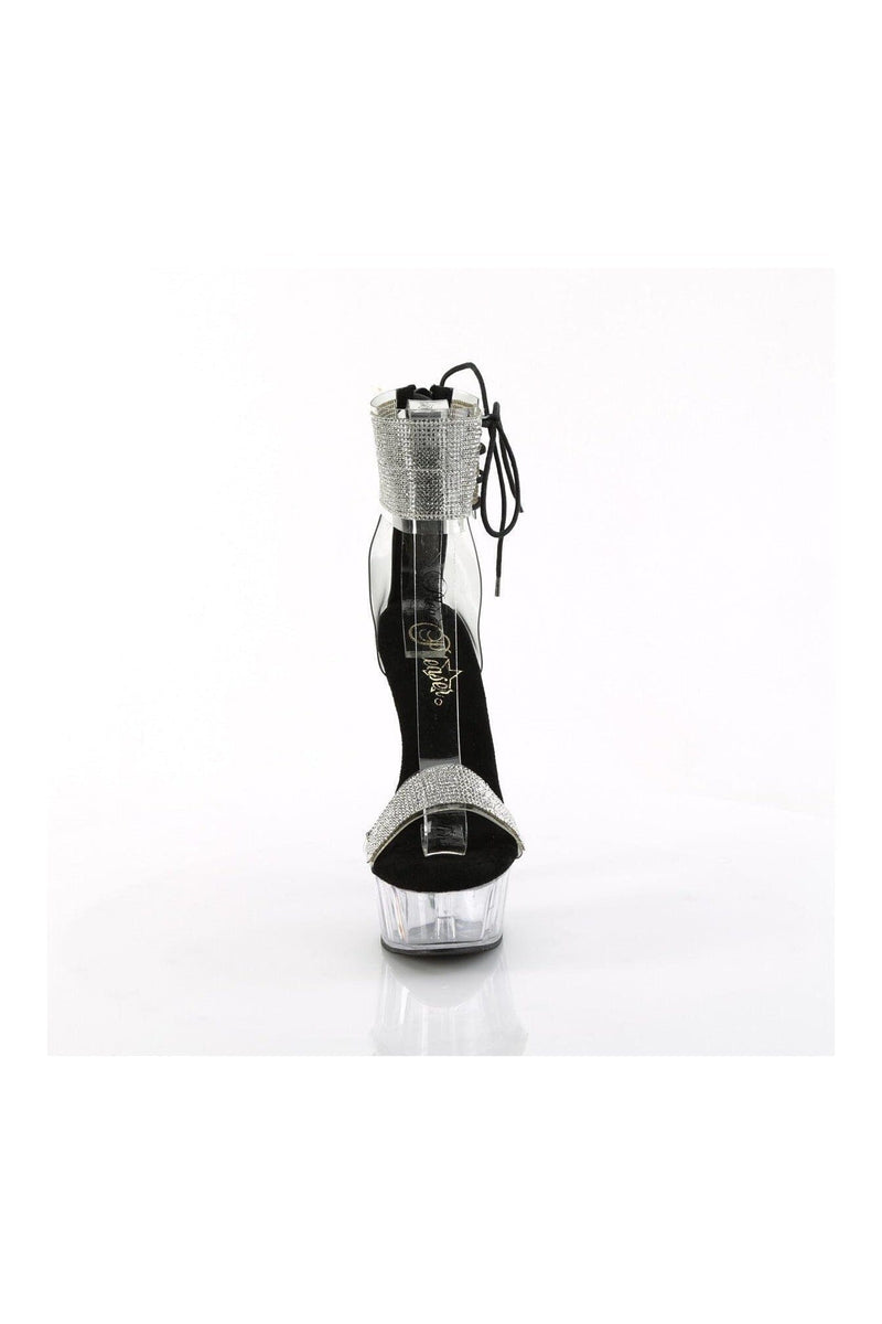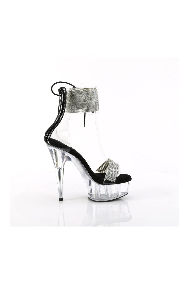 6" Heel, 1 3/4" Platform Ankle Cuff Sandal w/Rhinestone, Back Zipper