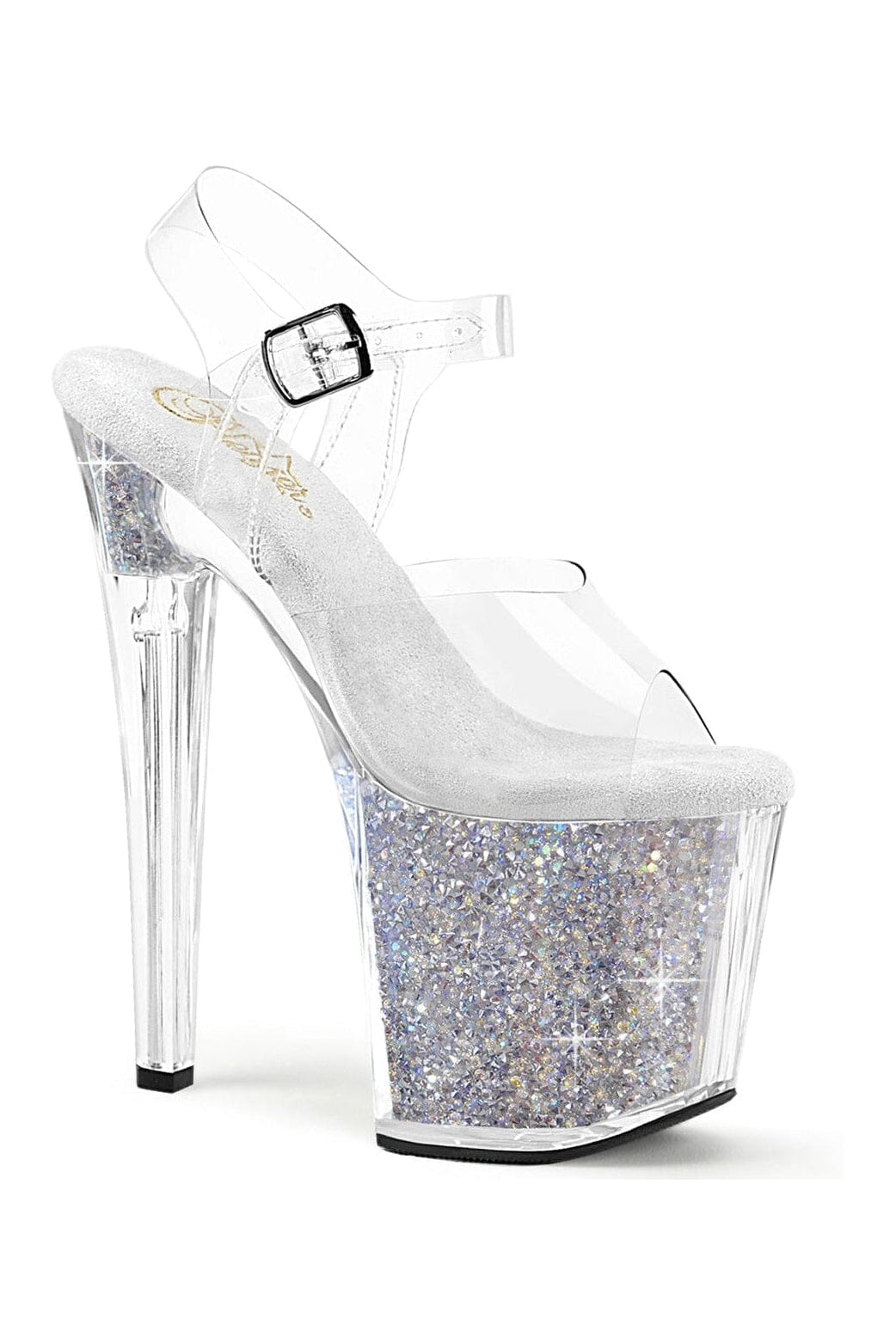 7 1/2" Heel, 3 1/2" Platform Ankle Strap Sandal with Rhinestones Inserts