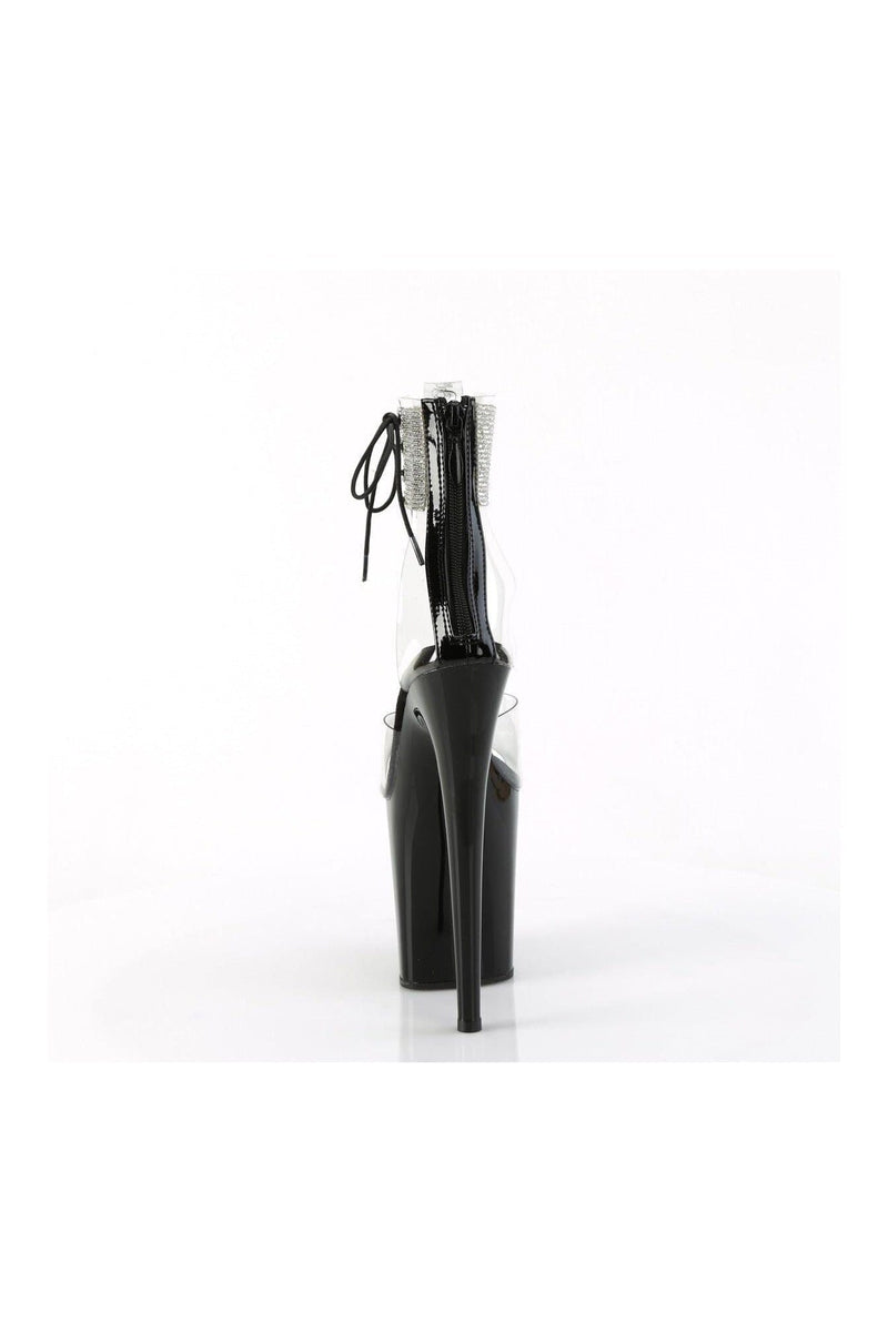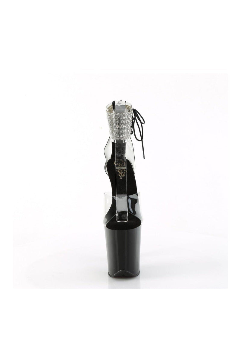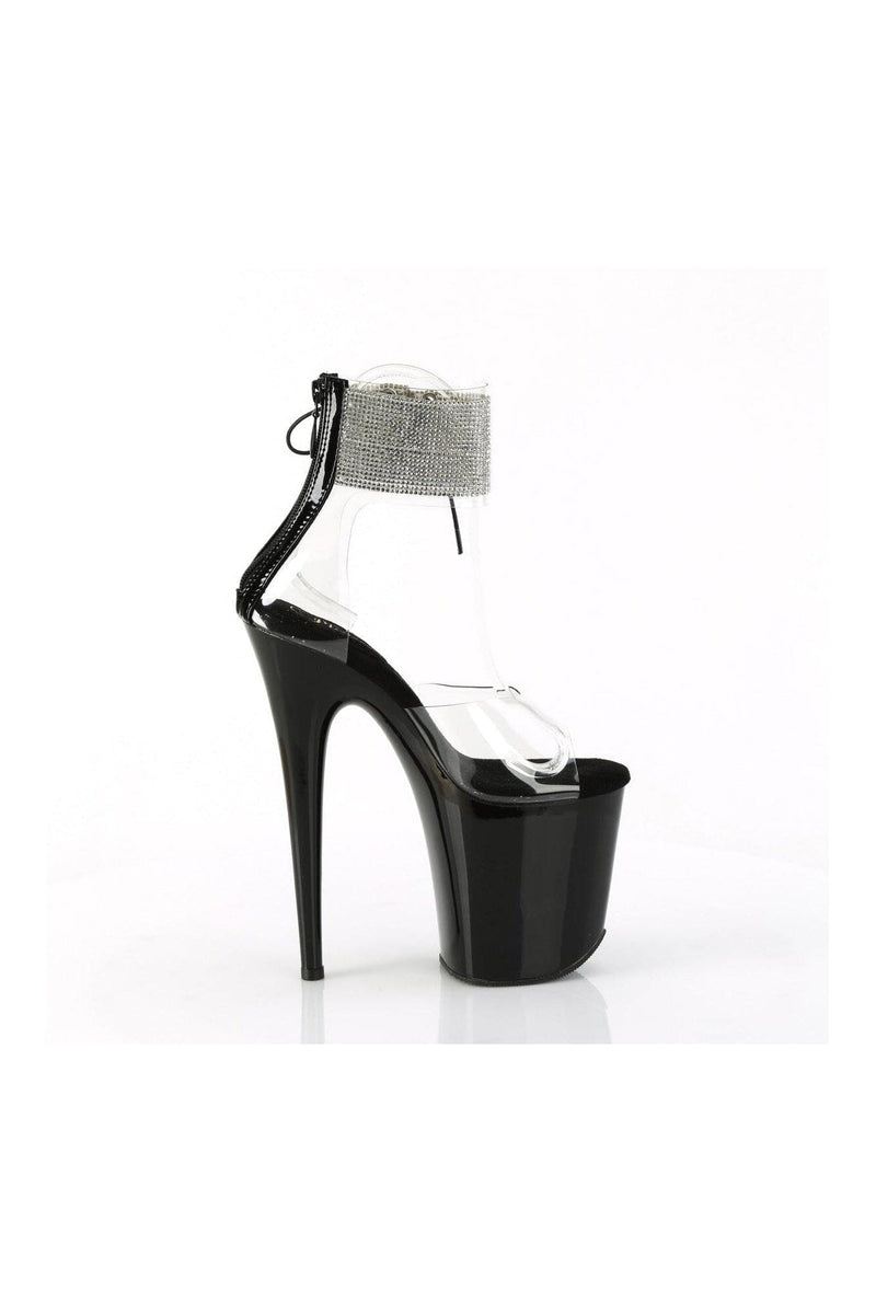 8" Heel, 4" Platform Rhinestoned Ankle Cuff Sandal, Back Zipper