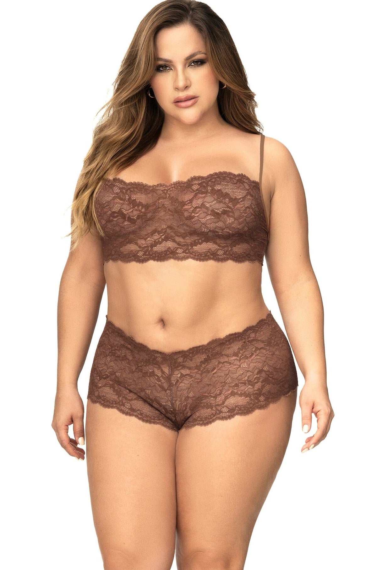 Mapale Panty and Top Lace Set in Brown  from SexyShoes.com