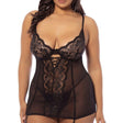Unlined Underwire Fitted Babydoll with Detachable Garter Straps and Matching G-String | Plus Size Blue