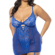 Soft cup fitted lace babydoll with open caged back and matching g-string