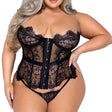 Sleeved scallop lace top w/matching lace up back garter belt, G-string and hose set.
