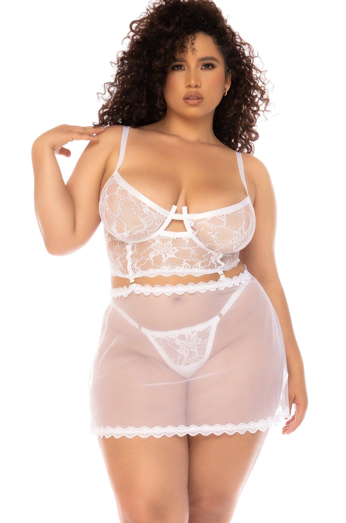 Convertible Lace Bustier Babydoll Set | Plus Size