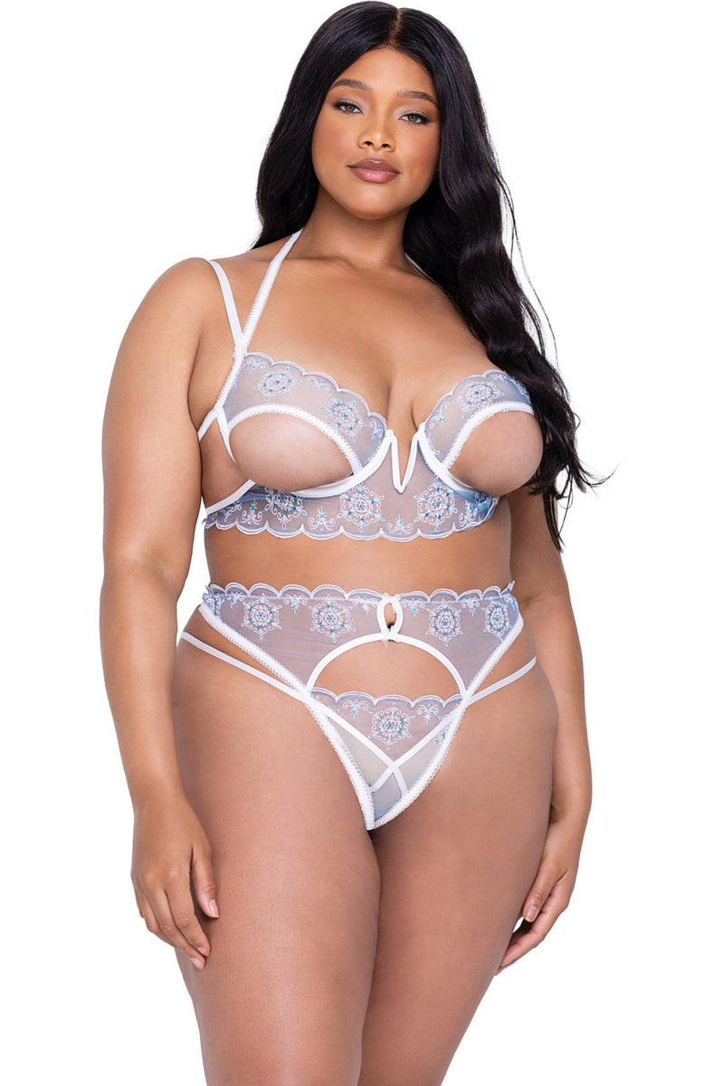 Snow Queen 3-Piece Garter Short Set-Lingerie Sets-SEXYSHOES.COM