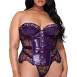 The sexiest laced camisole comes underwired with peek-a-boo cups, and an open front laced up with satin ribbon. Diamante charm details. Adjustable thong included.