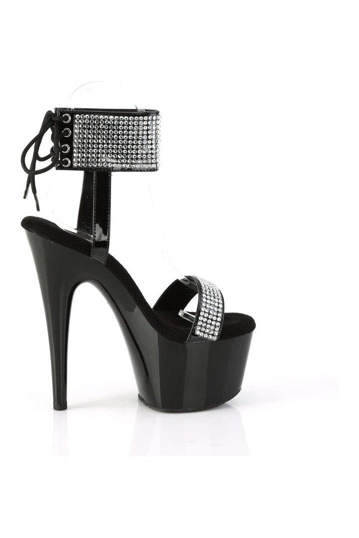 7" Heel, 2 3/4" Platform Lace-Up Back Ankle Cuff Sandal with Rhinestones