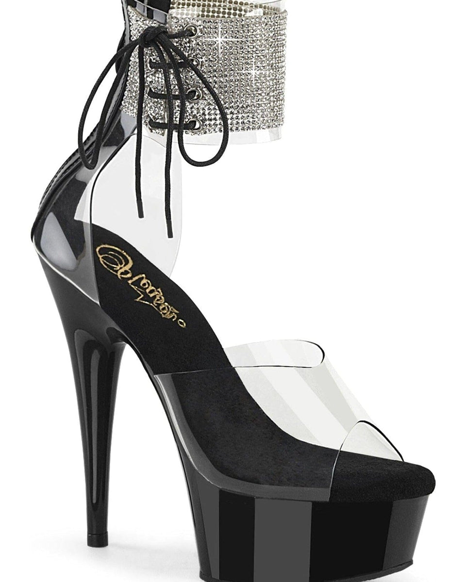 6" Heel, 1 3/4" Platform Rhinestone Ankle Cuff Sandal, Back Zipper