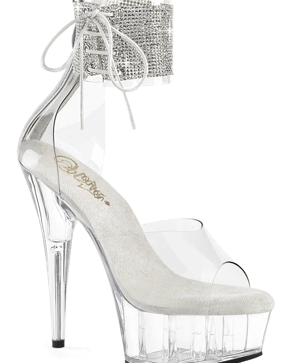 6" Heel, 1 3/4" Platform Rhinestone Ankle Cuff Sandal, Back Zipper