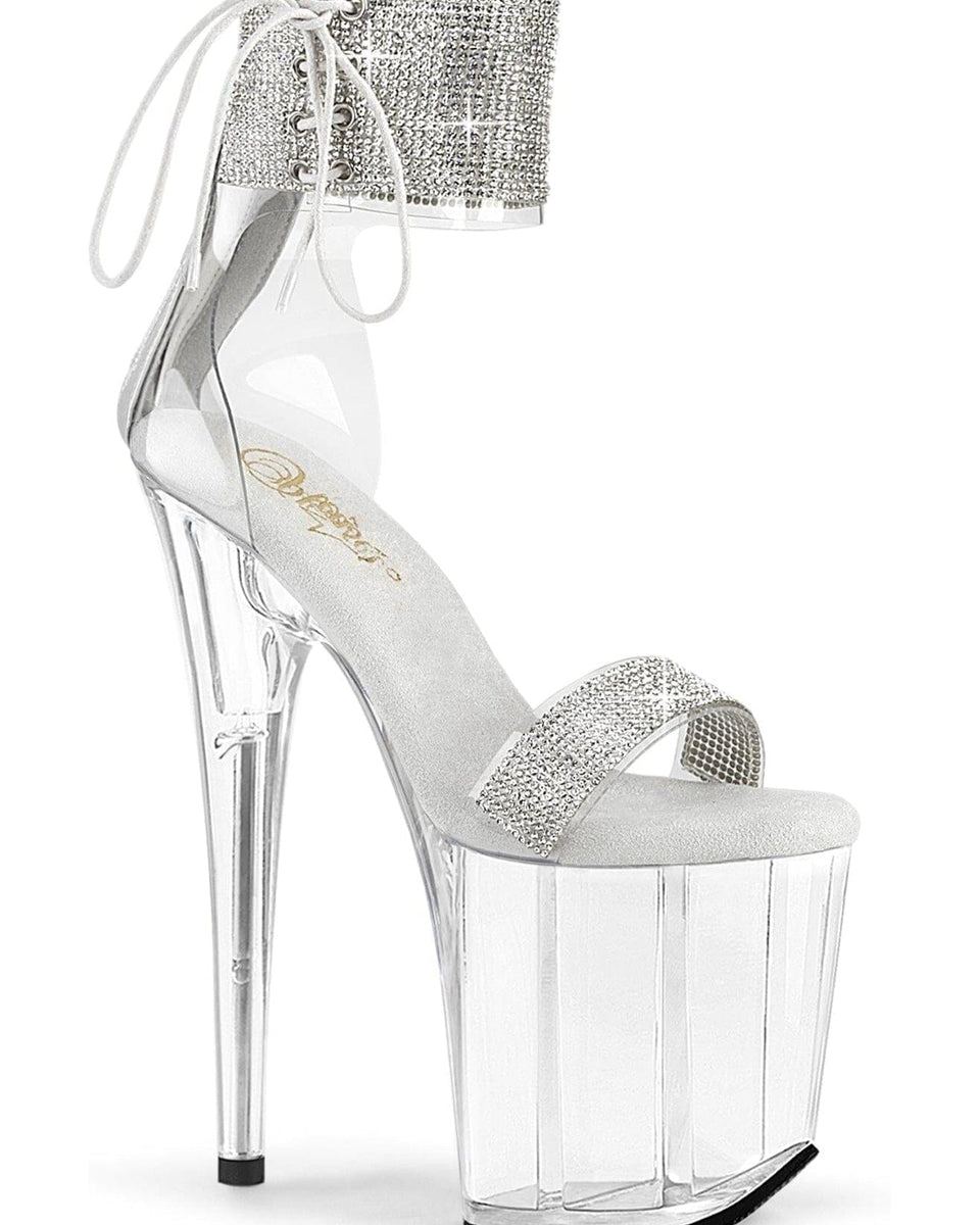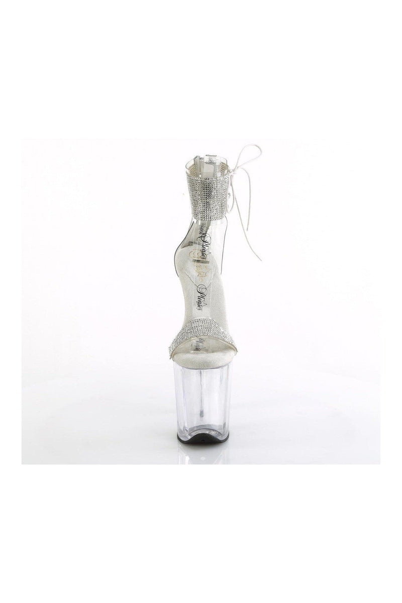 8" Heel, 4" Platform Ankle Cuff Sandal w/Rhinestone, Back Zipper