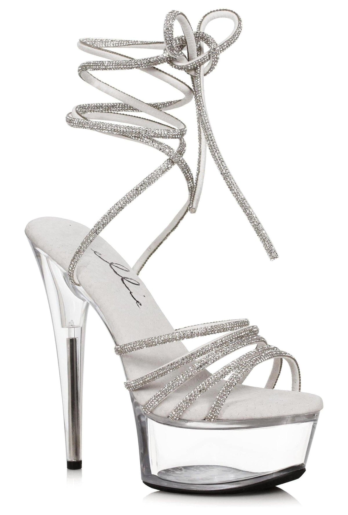 Ellie Shoes Ellie 609 LUSH 6" Rhinestone Strap Sandal in Silver Faux Leather from SexyShoes.com