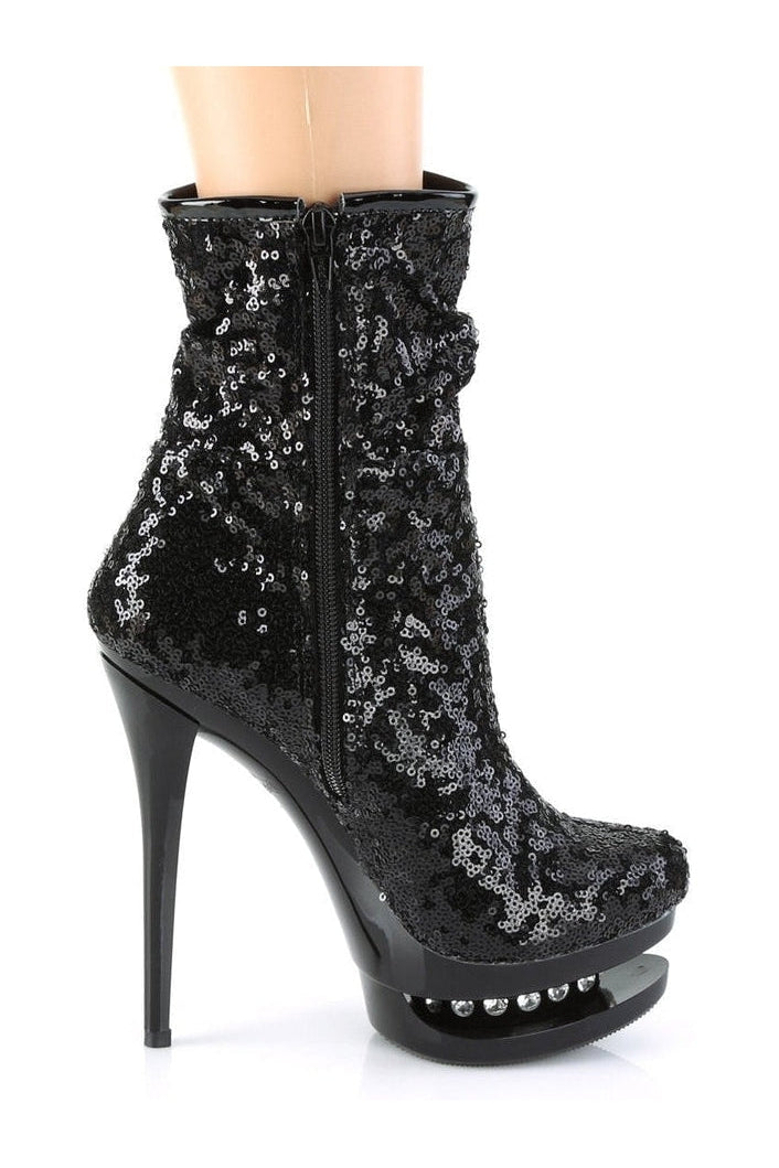6" Heel, 1 1/2" Platform Sequined Ankle Boot, Side Zipper