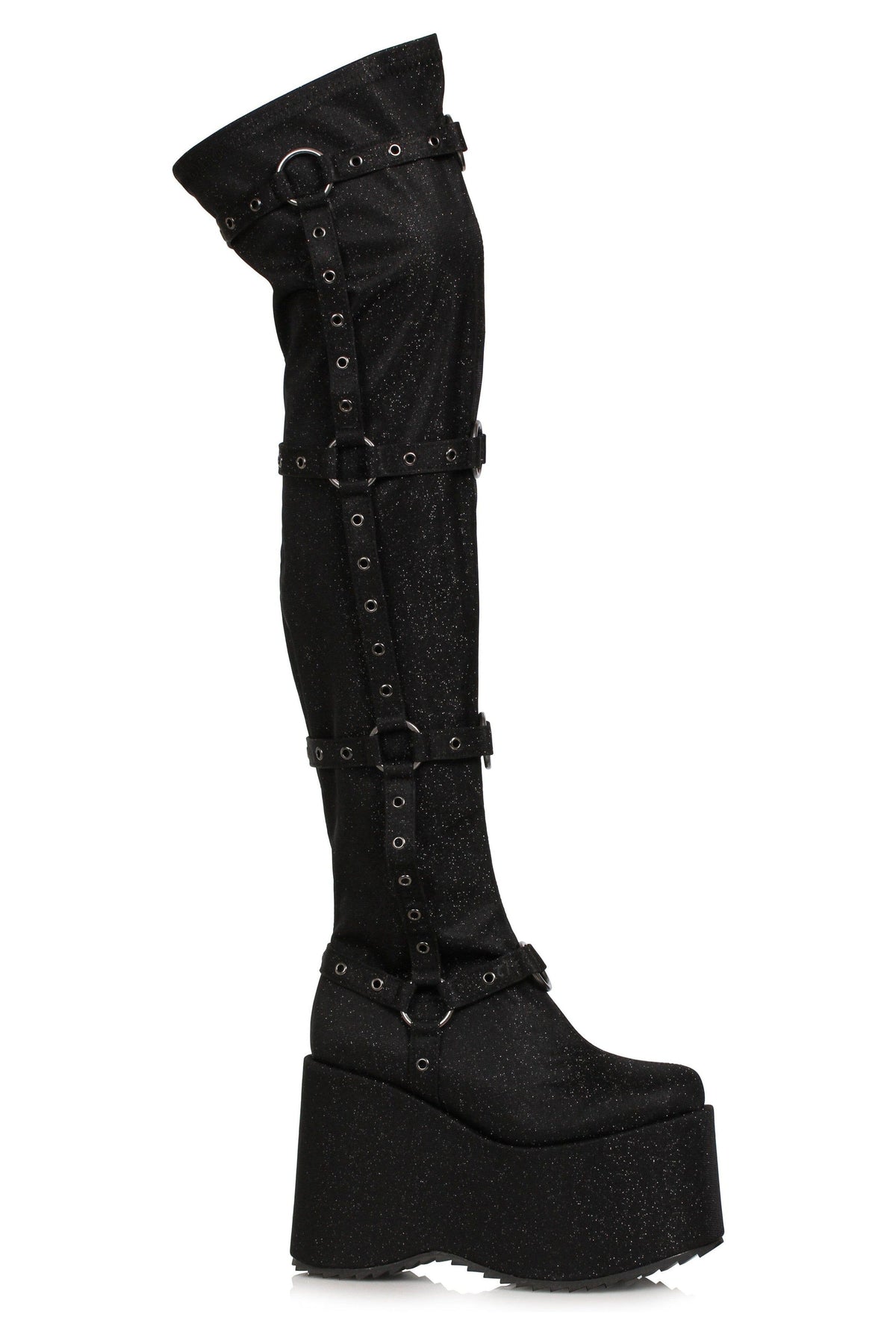 5" Chunky Heel Platform Thigh High Boot with Buckles