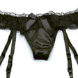 The Ultimate Lace Corset our stunning re-embroidered lace is lined with heavy satin and elegantly trimmed with floral patterned Venice on top and bottom of our sweetheart neckline design with slimming boning, hook and eye side closure and waist slimming cleavage enhancing lace up back. Comes with detachable and removable garters and G-String. Colors: Black, White. Sizes: 32-34-36-38. Shown with No. 90026 Stockings. Also available in Plus Sizes.