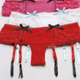 Mesh And Lace Open Front Gartini With Adorable Ruffles Of Lace And Adjustable Garters With Ribbon Tabs.
