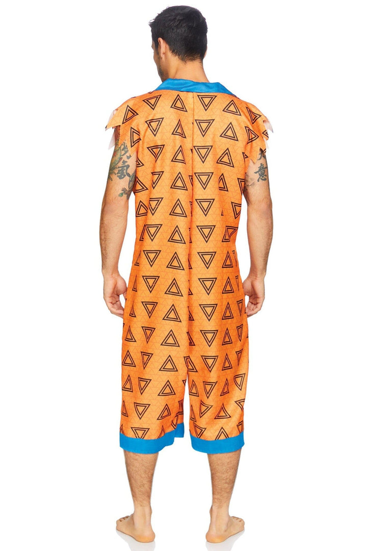 Bedrock Bro, features printed jumpsuit with pockets and double sided zipper.