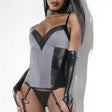 1 PC. Fully boned rigid eyelash lace bustier with underwire cups & PVC bone covers. Center front hook & eye closure & center back cord lace up with removable straps and garters.