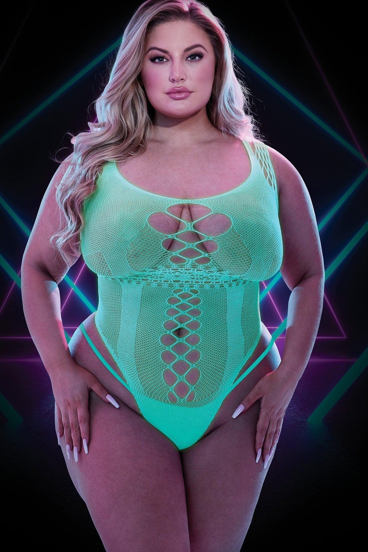 Lapdance Lingerie Glow In The Dark Teddy in Green  from SexyShoes.com