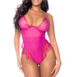 This timeless lace bodysuit is elevated with a seductive full lace-up back detail, crafted in a bold, vibrant pink.