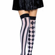 Woven Diamond Card Suit Thighs High With Bow And Card Charm Stockings