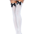 Leg Avenue Opaque Bow Thigh High Stockings in White  from SexyShoes.com